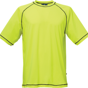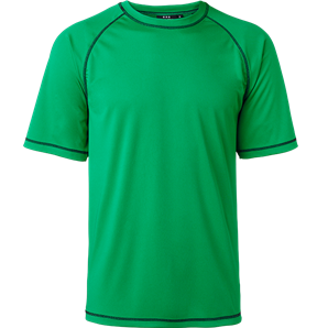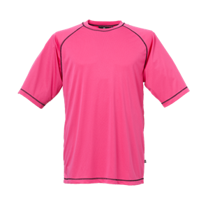 Snabbtorkande t-shirt som transporterar bort fukt från kroppen. 100% polyester med raglanärm. Färg 46 flourecent yellow , 56 bright green, 62 cerise och 81 aqua, med kontrastsömmar. Material: 100% polyester. Vikt: 140 gr/m² Tvättråd: 40° Storlekar: 120-140-160-XS-S-M-L-XL-XXL.